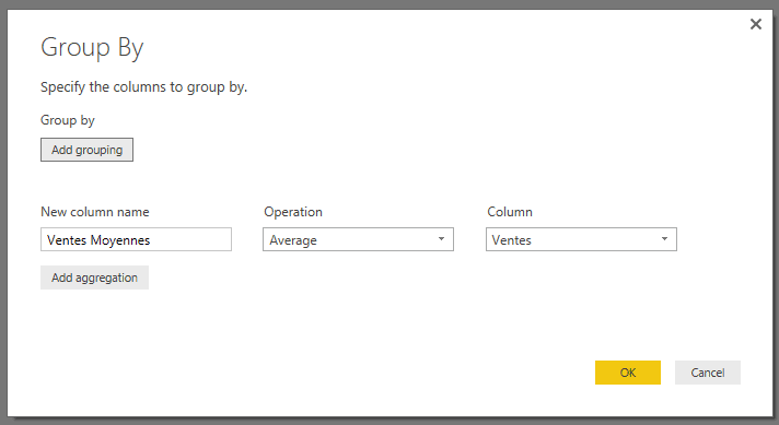 J’ai ensuite utilisé la fonctionnalité “Group By” (ou regroupement par) pour calculer les Ventes Moyennes.