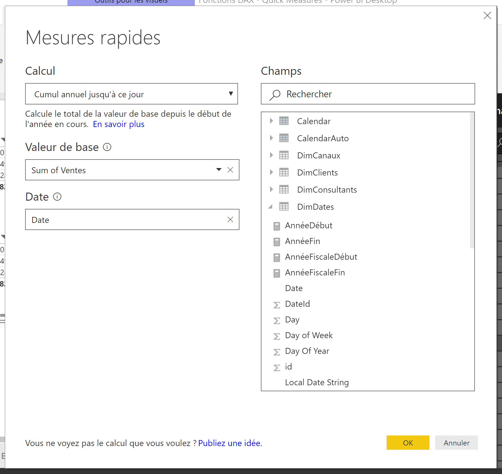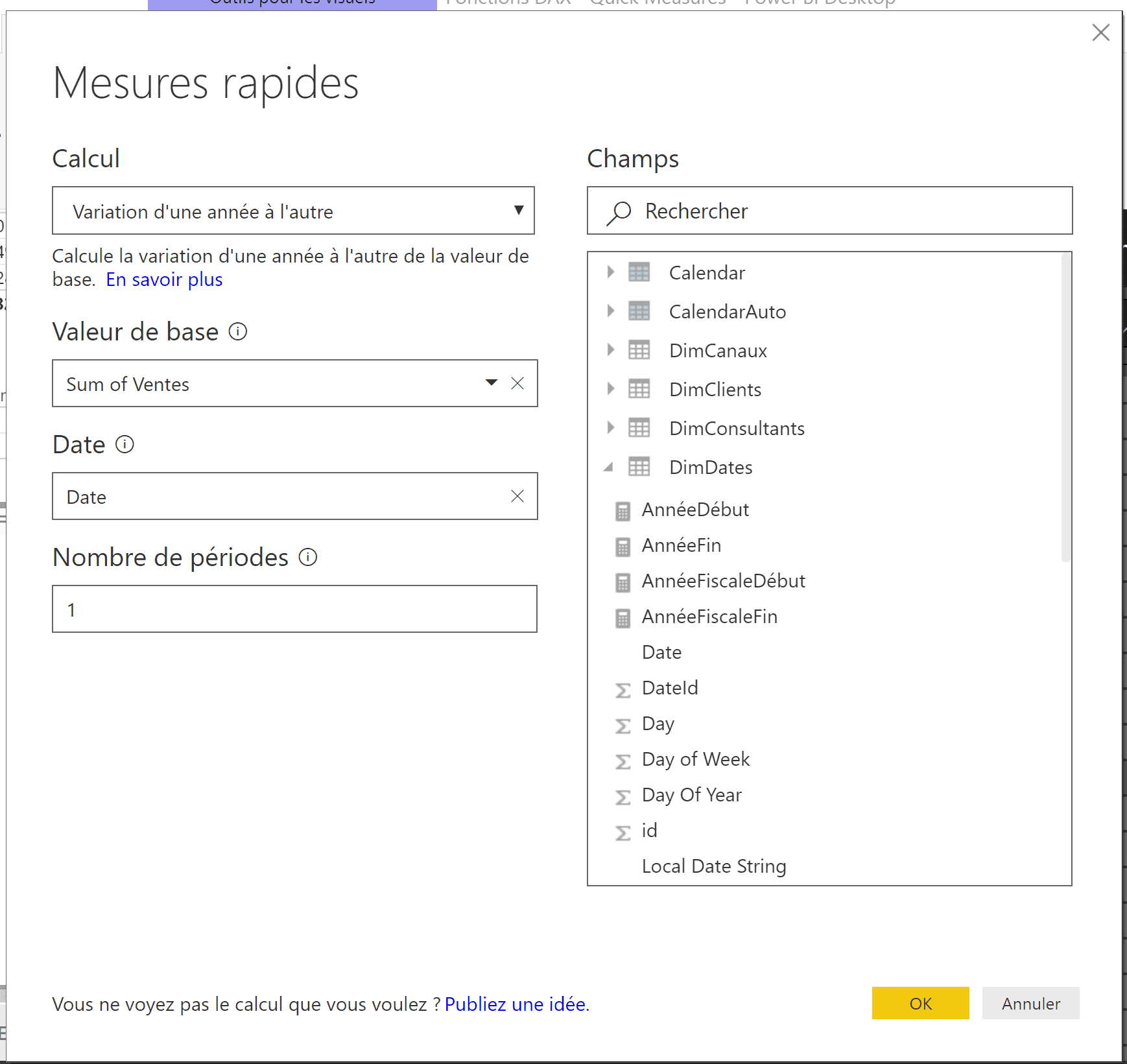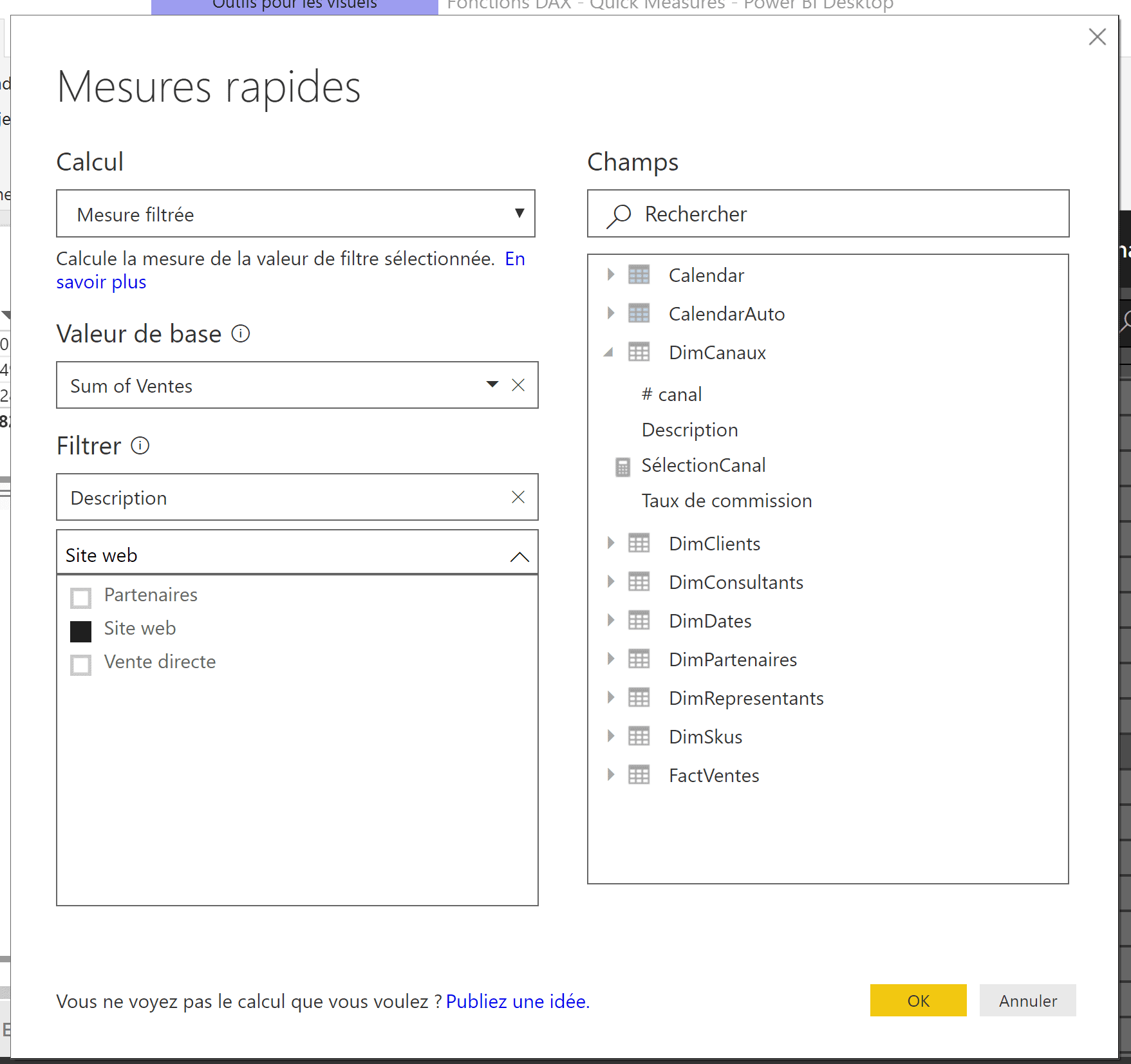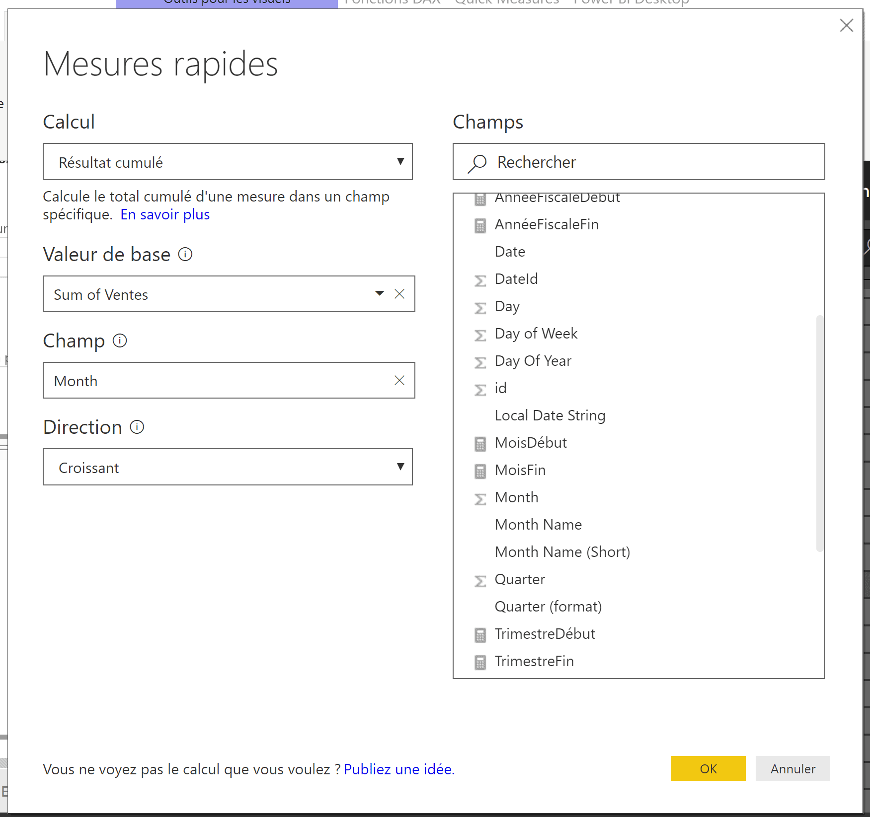 D’un autre côté, si vous devez apprendre le langage DAX, la fonctionnalité de mesures rapides sera sans doute, pour vous, un bon tuteur.