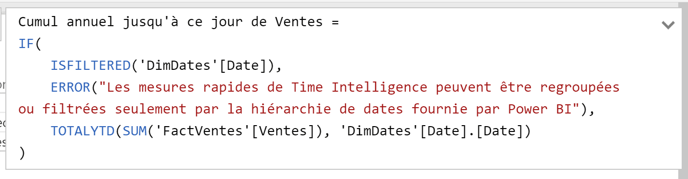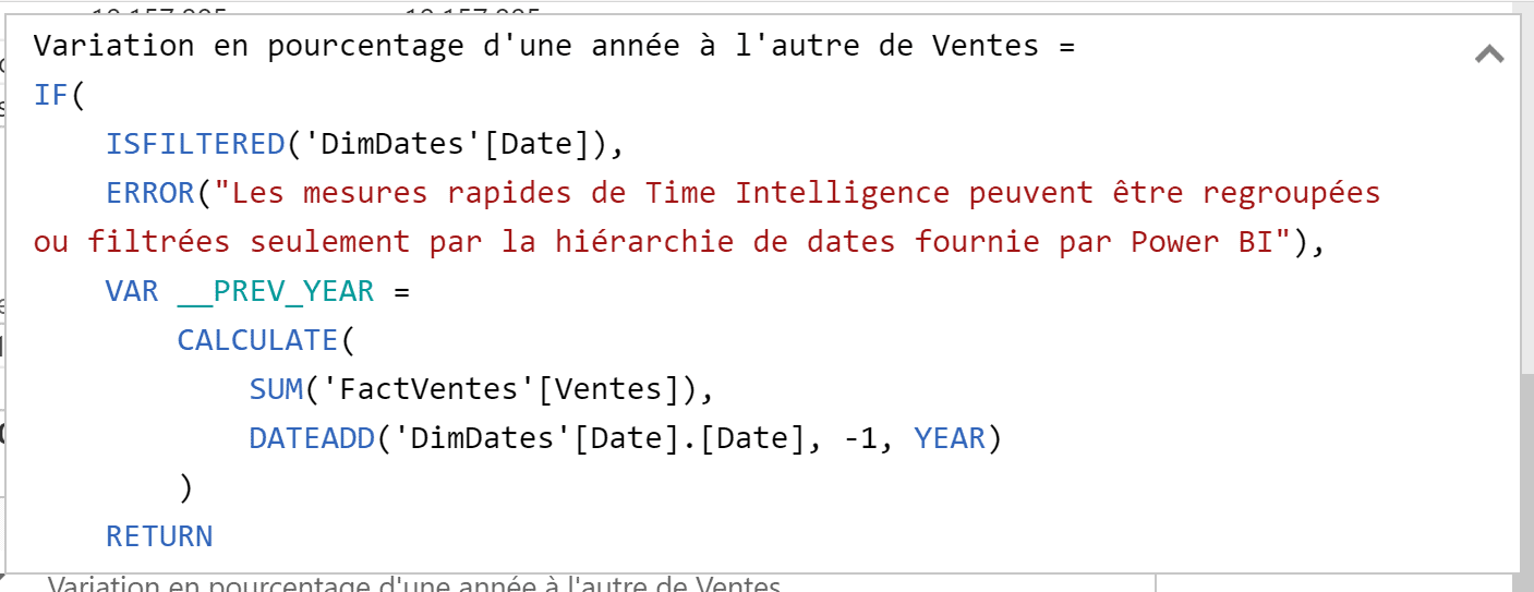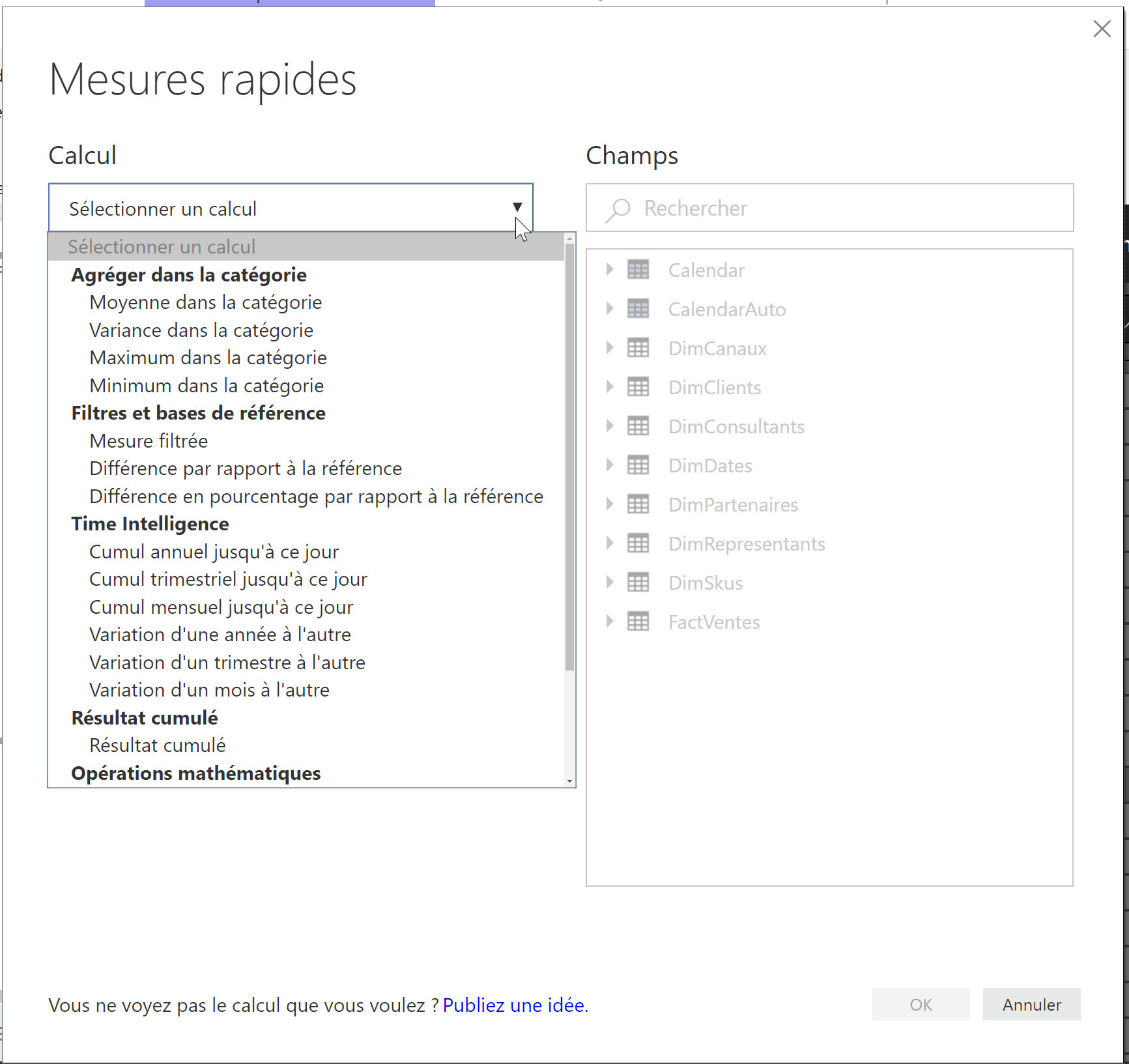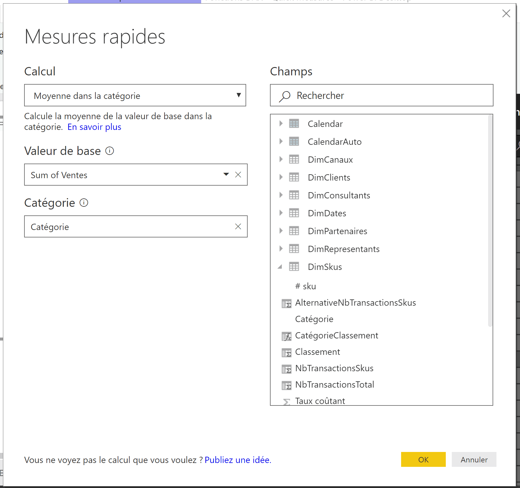 D’un autre côté, si vous devez apprendre le langage DAX, la fonctionnalité de mesures rapides sera sans doute, pour vous, un bon tuteur.