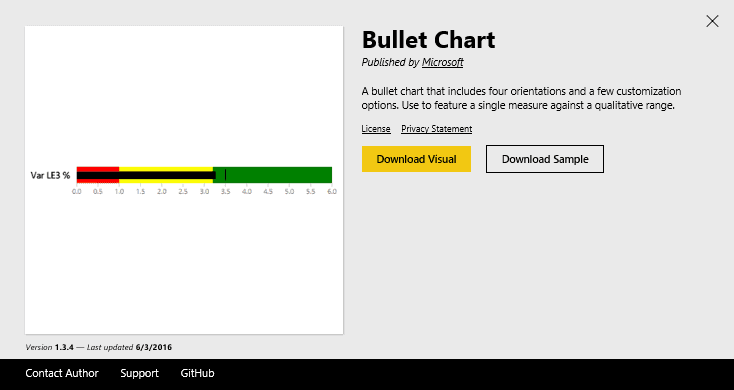 La majorité de mes clients utilisent des “bullet charts” pour visualiser leurs données et ce type de graphique n’est pas disponible dans les choix proposés par Microsoft. Cet élément visuel est donc simple mais fort utile et un bon apport au choix de graphiques natifs.
