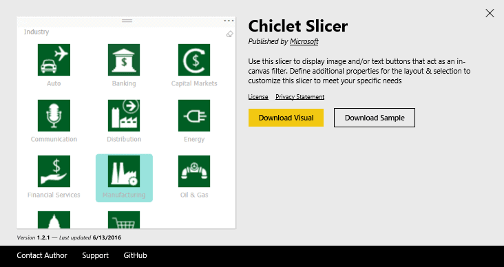 Cet élément visuel permet d’insérer des images dans vos segments (slicers) et d’en faire une présentation professionnelle. Cela dit, depuis l’apparition de cet élément visuel dans la galerie, Microsoft a largement bonifié les options de ses segments de base. J’utilise néanmoins fréquemment le “Chiclet Slicer” car il est facile à utiliser et donne d’excellents résultats.