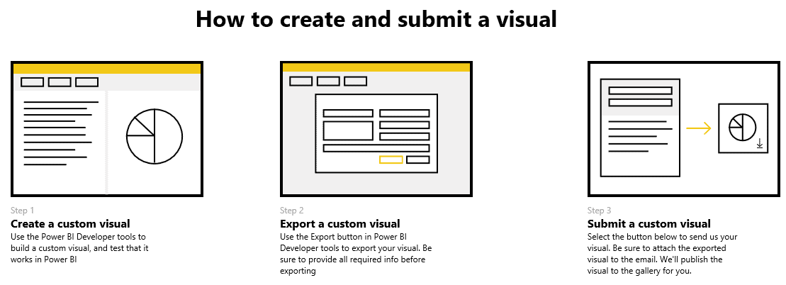 La galerie d’éléments visuels se trouve sur la page suivante: https://app.powerbi.com/visuals/. Cette galerie comprend déjà un vaste choix d’éléments visuels et continue d’être bonifiée par une variété de développeurs.