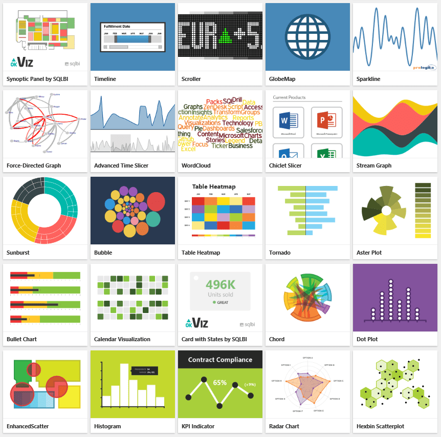 Power BI est d’abord et avant tout un outil de visualisation, qui permet de raconter des histoires, à partir de certaines données. Le choix d’éléments visuels dans Power BI est constamment bonifié. De plus, il existe une galerie de visuels Power BI, mise sur pieds par Microsoft, où les développeurs peuvent proposer leurs éléments visuels. Ceci permet aux utilisateurs de Power BI d’avoir accès à un choix encore plus vaste d’éléments visuels, quand vient le temps d’élaborer un rapport dans Power BI.