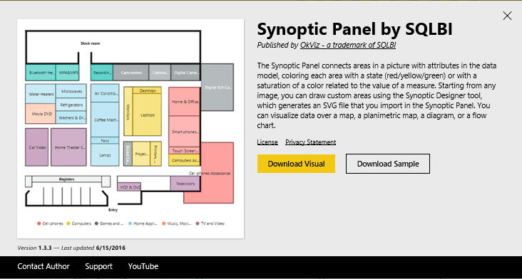 Le Synoptic Panel est extrêmement intéressant mais pas très facile à utiliser. Il permet d’associer des données à des sections d’images. Ces images peuvent, par exemple, représenter le plan d’une usine ou d’un magasin et les données peuvent représenter les ventes. Vous pouvez utiliser les images et les données de votre choix, d’où la complexité. L’équipe derrière cet élément visuel propose toutefois beaucoup de documentation, ce qui est fort apprécié.