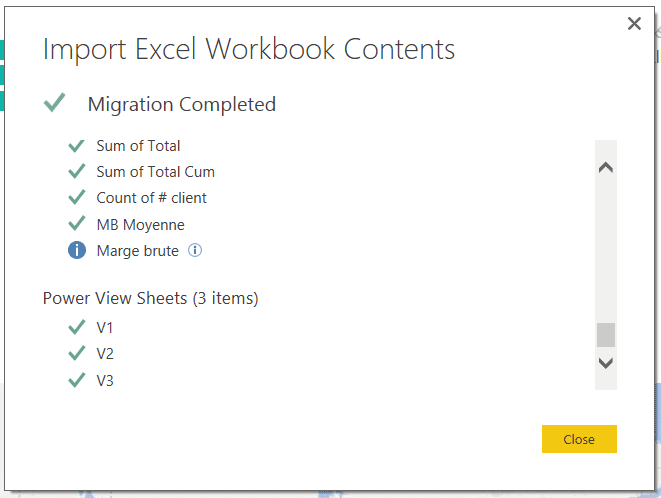 Si vous avez élaboré, par le passé, des fichiers Excel utilisant les add-ins Power Query, Power Pivot et/ou Power View, vous pouvez les importer directement dans Power BI Desktop. Tout ce qui se trouve dans les feuilles Excel (données, formules, tableaux croisés dynamiques, graphiques) ne sera pas importé dans Power BI Desktop. Toutefois, toutes les requêtes effectuées via Power Query, le modèle de données élaboré avec Power Pivot et les visualisations créées à partir de Power View seront convertis dans l’application. Une fois importés dans Power BI Desktop, vous pourrez continuer de faire évoluer vos requêtes, votre modèle de données et vos visualisations. Les rafraîchissements de données, se feront directement à partir de l’application. Il est bon de préciser que l’engin de visualisation dans Power BI Desktop n’est pas Power View. Il offre donc davantage de possibilités et permet d’aller beaucoup plus loin en termes de visualisations. L’objectif ultime d’un fichier .pbix est d’être publié sur Power BI Service.