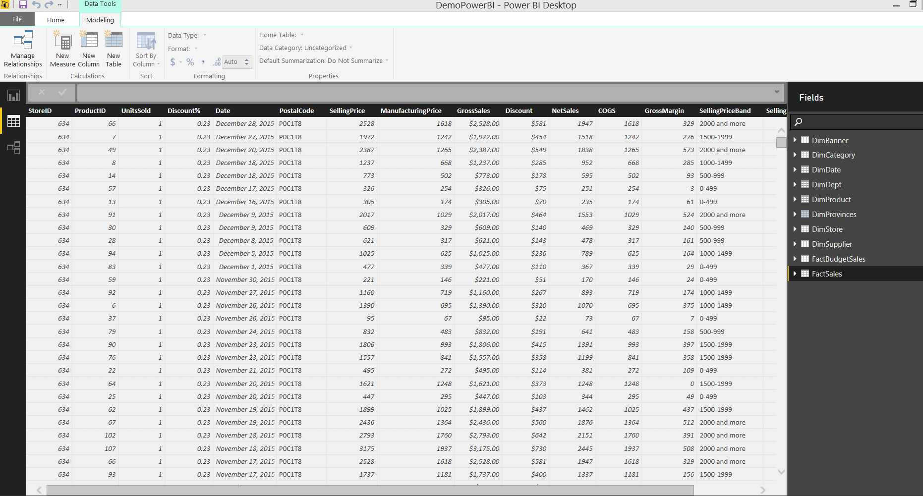 La section Data est l’équivalent de la vue Grid dans Power Pivot.