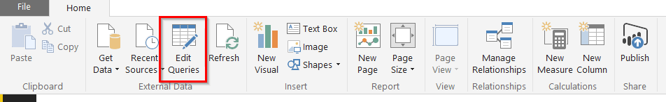 Pour accéder à l’interface équivalente à Power Query, il faut cliquer sur l’option Edit Queries.