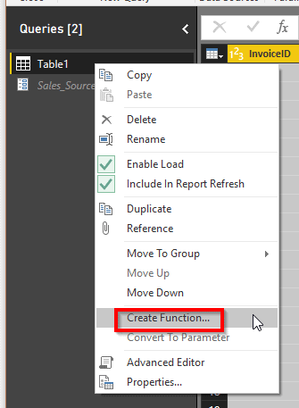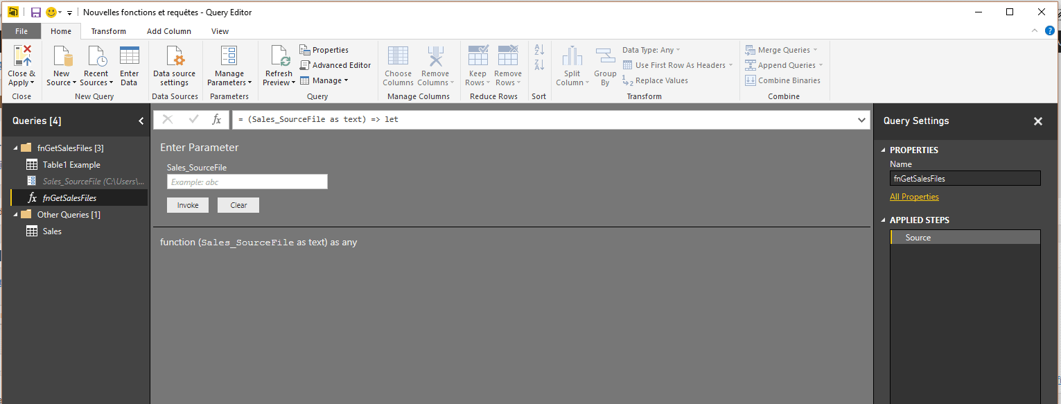 Créer la nouvelle fonction dans Power Query