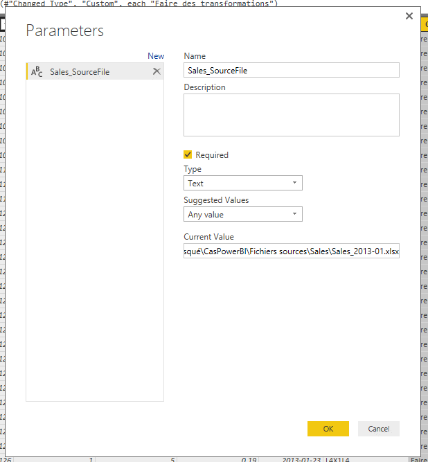 Créer les paramètres requis par la fonction dans Power Query
