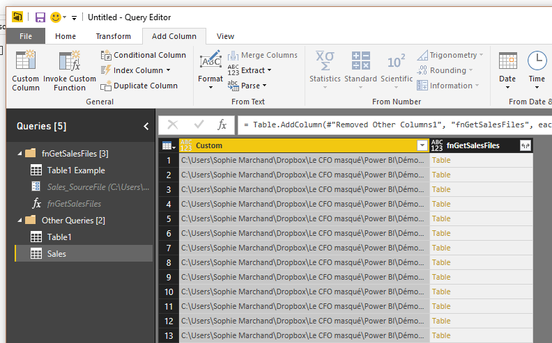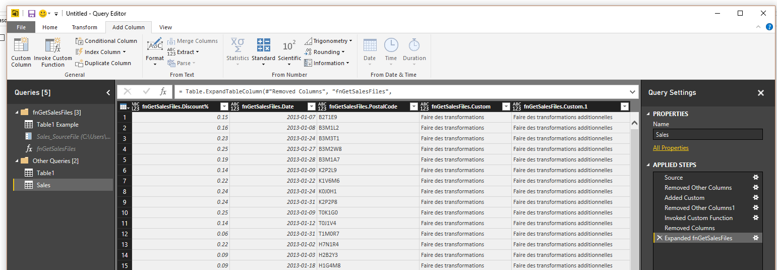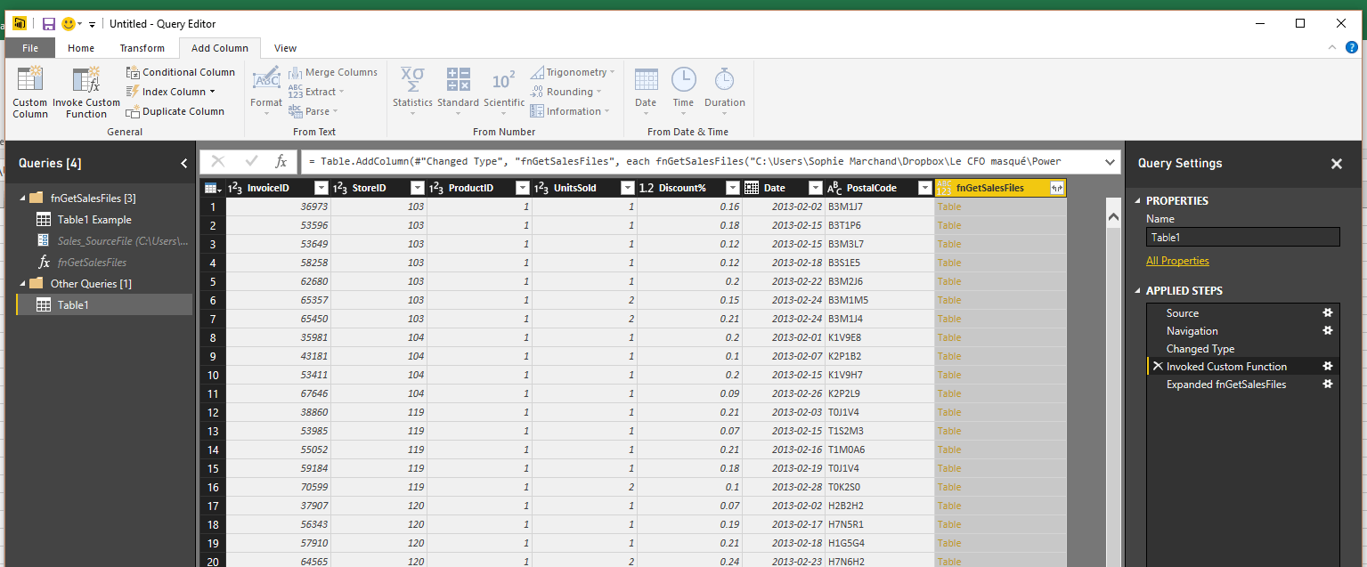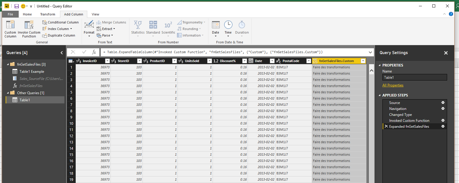 Tester la nouvelle fonction dans Power Query