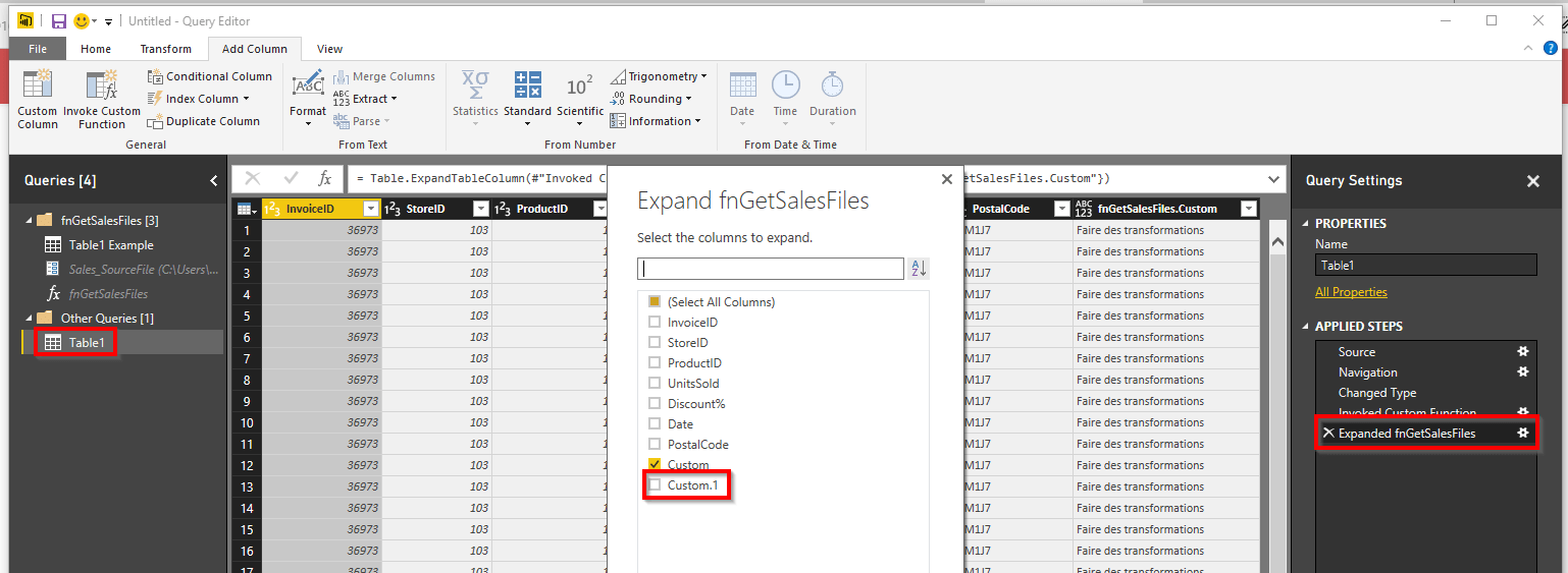 Pousser plus loin les modifications de la fonction de Power Query