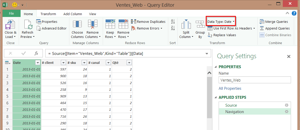 Avec le temps, j’ai réalisé qu’il était plus simple de travailler le format des données directement dans Power Query. Ainsi, quand je termine une série de transformations sur une source de données dans Power Query, je m’assure que chaque colonne est sauvegardée dans le bon format avant de sauvegarder ma requête. Cette meilleure pratique dans Power Query devrait, à mon avis, toujours être respectée pour éviter des problématiques sur d’éventuelles requêtes, notamment celles qui comprennent des calculs et/ou des fusions.