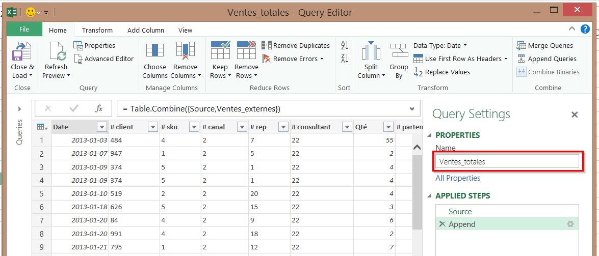 Lorsque vous avez créé votre requête référée, donnez-lui tout de suite un nom significatif avant de l’enregistrer dans le modèle de données Power Pivot. Pourquoi? Parce que c’est ce nom que prendra Power Pivot pour nommer l’onglet correspondant. Au moment où j’écris cet article, lorsque l’on renomme la requête dans Power Query, celle-ci n’est pas renommée dans Power Pivot. Respecter cette meilleure pratique dans Power Query rendra donc votre expérience plus agréable dans Power Pivot.