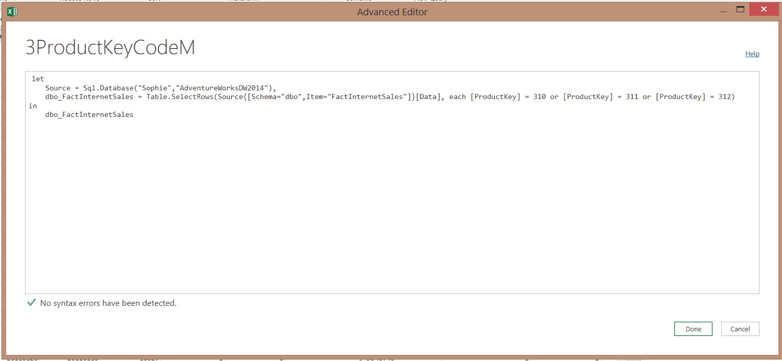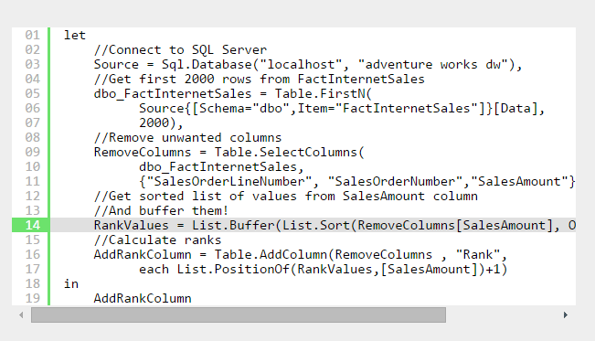 Évidemment, vous pouvez également utiliser le code M et le modifier en conséquence. Toutefois, il y a de fortes chances pour que vos requêtes sur un serveur SQL profitent du Query Folding (expliqué plus bas dans cet article). Dans ce cas, vous ne gagnerez pas nécessairement en performance lorsque vous modifierez le code M.