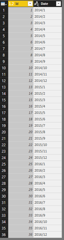 J’ai également créé une table pour obtenir tous les mois et années sous analyse et j’ai ajouté une colonne “id”, qui me sera très utile plus tard.