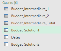 Notre troisième requête met simplement bout à bout les deux tables précédentes, pour ne créer qu’une seule table de budget consolidée (utilisation de la fonctionnalité Append/Ajouter).