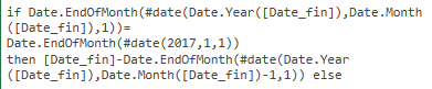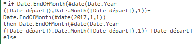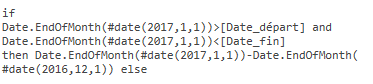 Un deuxième if est utilisé pour considérer le nombre de jours écoulés dans le mois, lorsque le mois de la date de fin est le même que le mois de la date de la colonne. On doit alors prendre le nombre de jours entre la date de fin du mois précédent et la date de fin fournie.