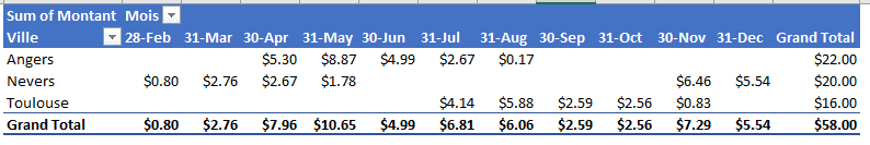 À l’aide de notre table résultante, nous avons pu construire le tableau croisé dynamique suivant: