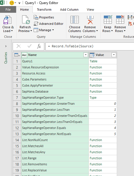 Vous obtiendrez ainsi une table de référence avec toutes les fonctions de Power Query.