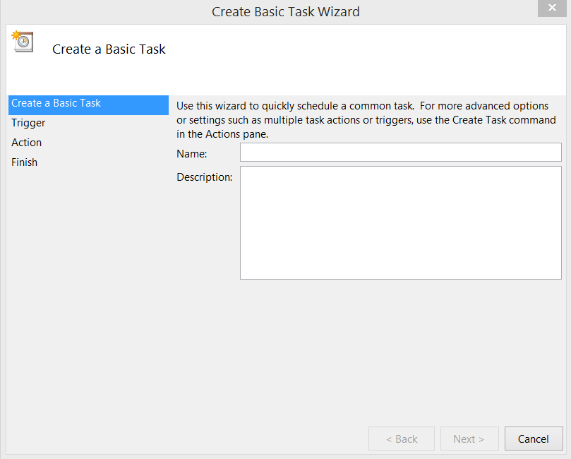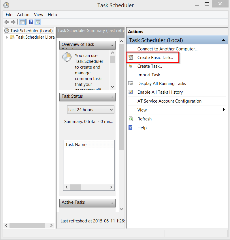 En cliquant sur l’application, une fenêtre comme la suivante s’ouvrira. Cliquez sur l’option “Create Basic Task…”.
