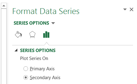 Si vous n’utilisez pas Excel 2013, vous pouvez sélectionner la série de données Marges et cliquer ensuite sur le bouton droit de votre souris et sélectionner Mettre en forme une série de données, puis cocher l’option d’axe secondaire. Vous pouvez également vous rendre dans votre menu Disposition et utiliser le menu déroulant sous l’option Axes, pour finalement choisir l’option d’axe secondaire.
