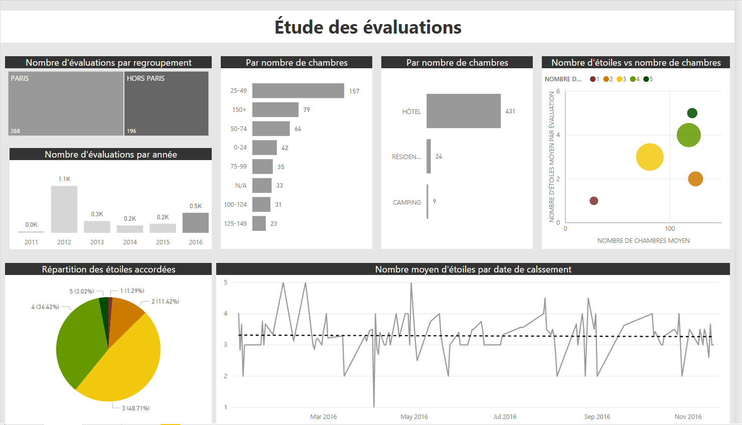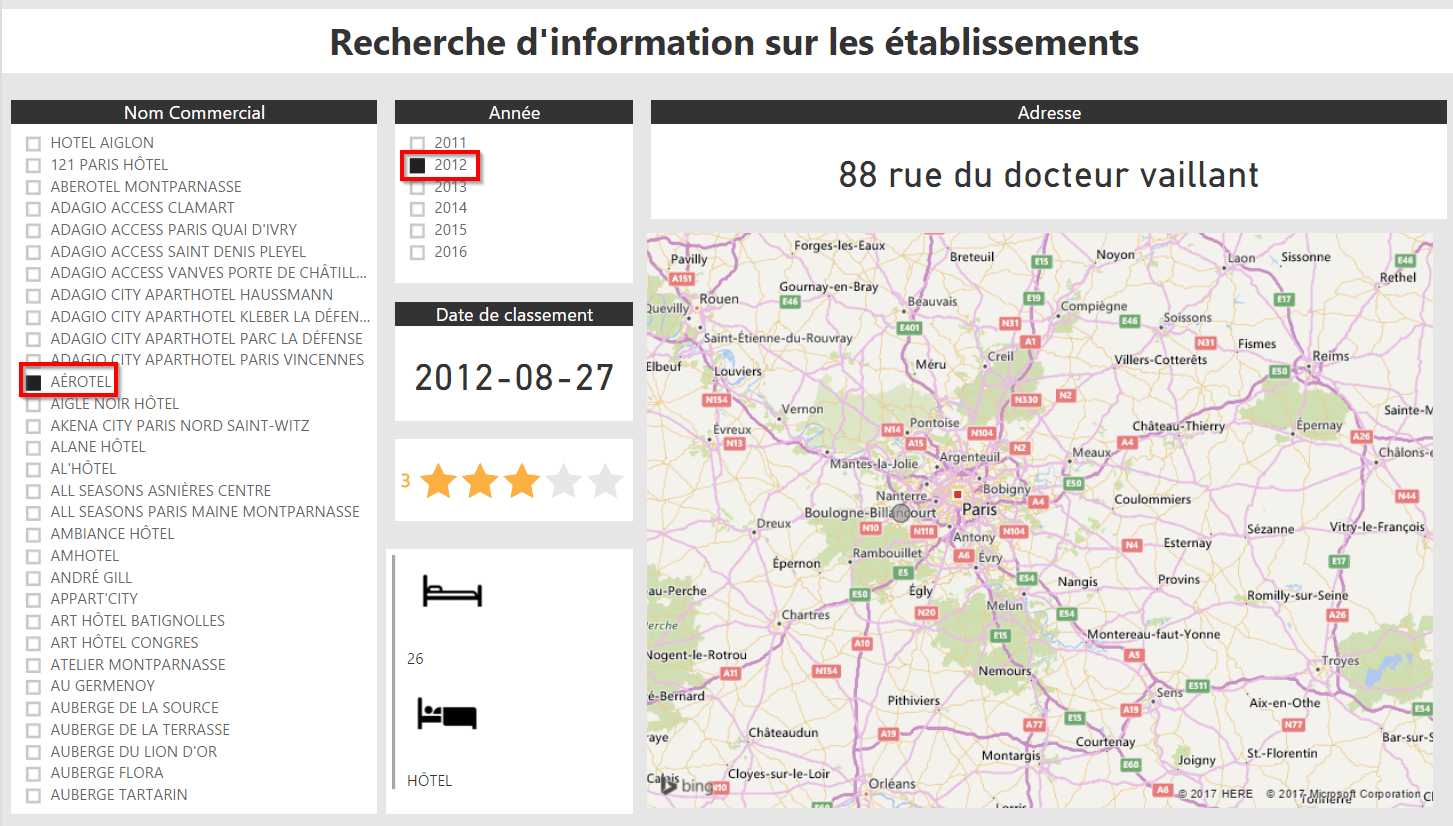 Vous trouverez dans cet article, un autre exemple de rapport construit avec Power BI. Ce rapport utilise des données ouvertes françaises (oui, amis français, j’ai pensé à vous!) concernant l’offre d’hébergement, dans les environs de Paris.